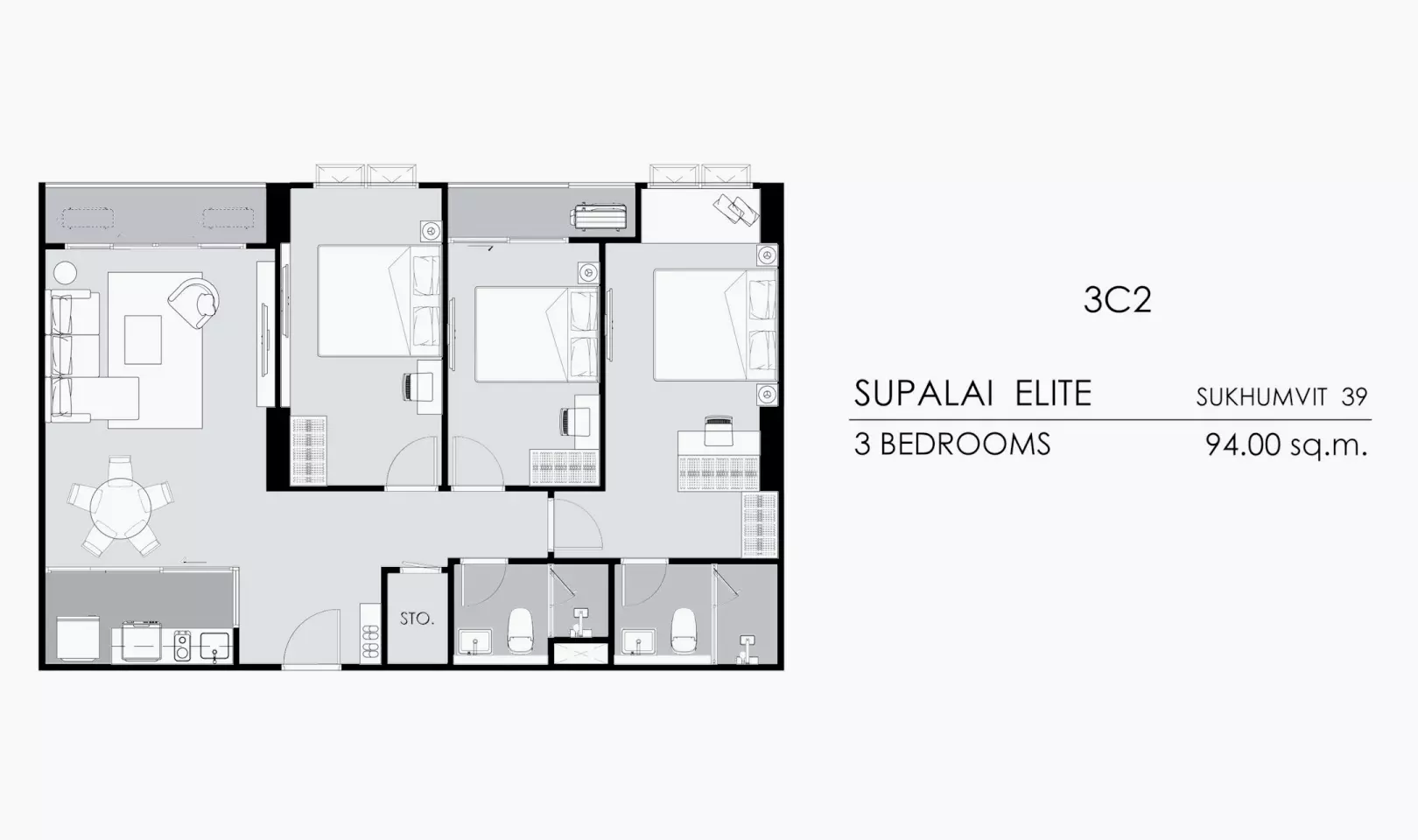3 Bedroom พื้นที่ใช้สอย 89.5 – 127.5 ตร.ม.