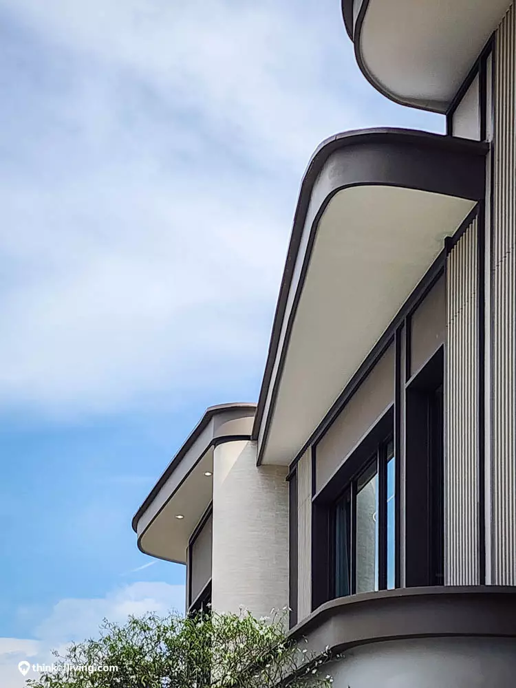 แอดมินชอบชื่อโครงการนะ บอกความเป็นตัวตนดี “กูธ์เธ่” แค่ชื่อก็เท่แล้ว มาดูบ้านกัน เป็นบ้านที่ออกแบบมา Modern ผสมกับความโค้งเว้า ใช้โทนสีออกแนวน้ำตาลผสมสีขาว เป็นหลักก็ดูเป็นธรรมชาติ