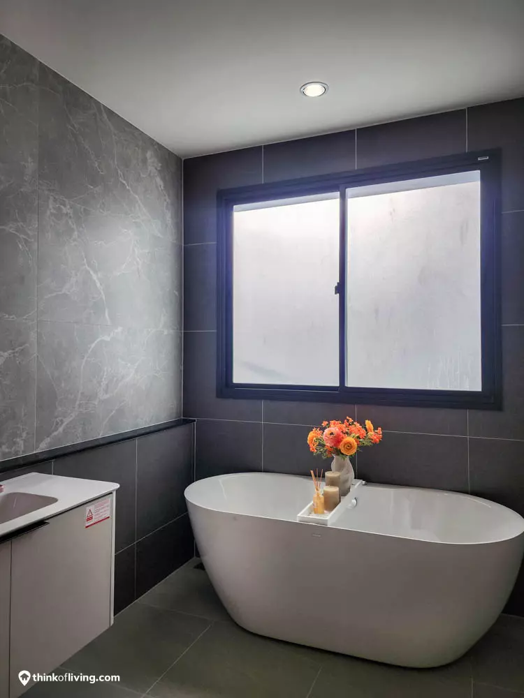 หลังนี้เป็นบ้านแบบ Xenith เป็นแบบใหญ่สุด พื้นที่ใช้สอย 461 ตร.ม. จัดมาเป็น 4 ห้องนอน 5 ห้องน้ำ 4 ที่จอดรถ 2 ห้องอเนกประสงค์ แบบนี้ราคาเริ่มต้น 28.66 ล้านบาท