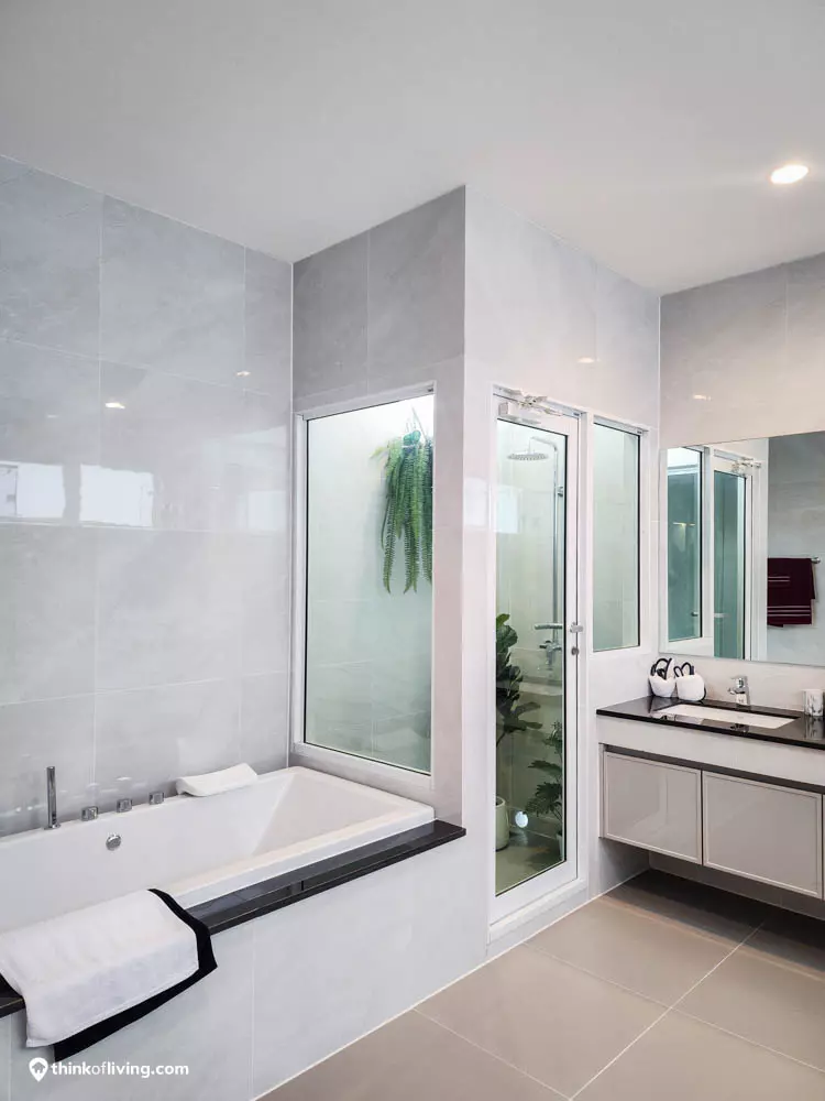 ชั้นบนมี 3 ห้องนอน มีห้องน้ำในตัวทุกห้อง ห้อง Master Bedroom ของที่นี่จัดมาใหญ่แบบใหญ่มากๆ จริงๆวางเตียง 10 ฟุตได้เลยนะ 555 มีมุมที่ทำเป็น Walk in closet ขนาดใหญ่ ที่อยู่หน้าห้องน้ำ แบบไม่มีประตู ให้บรรยากาศแบบรีสอร์ท วาบหวิวแบบเบาๆ ให้ห้องน้ำมีอ่างอาบน้ำมาให้ และยังมีส่วนที่อาบน้ำแบบ Outdoor แบบน่ารักๆ มาให้ทุกแบบบ้านด้วยนะครับ