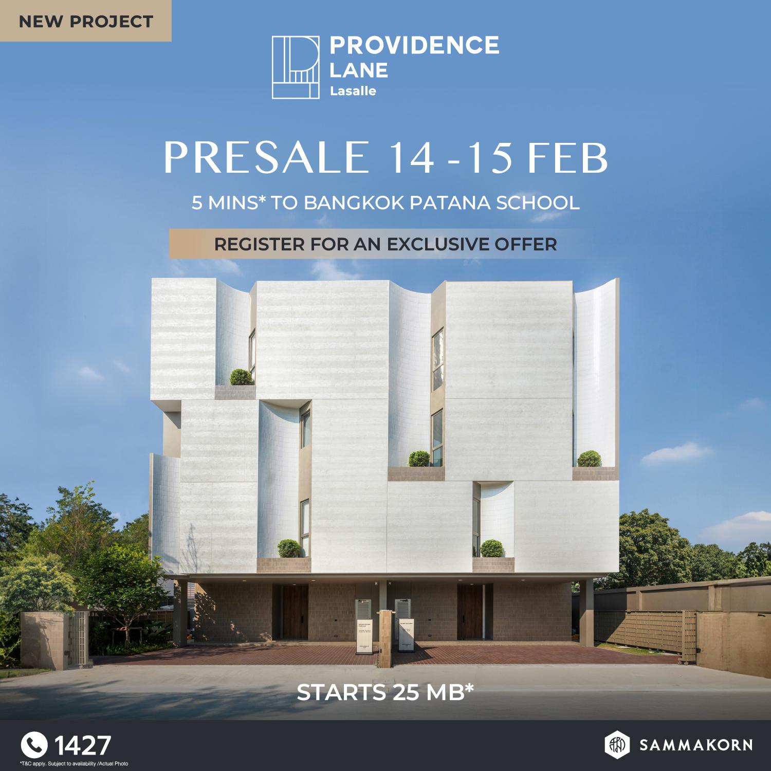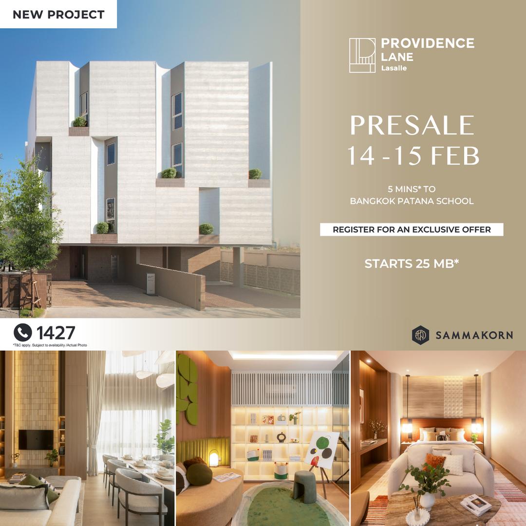 PRESALE 14-15 ก.พ. นี้ รับข้อเสนอสุดพิเศษ ที่ Providence Lane Lasalle l เริ่ม 25 ล้าน*