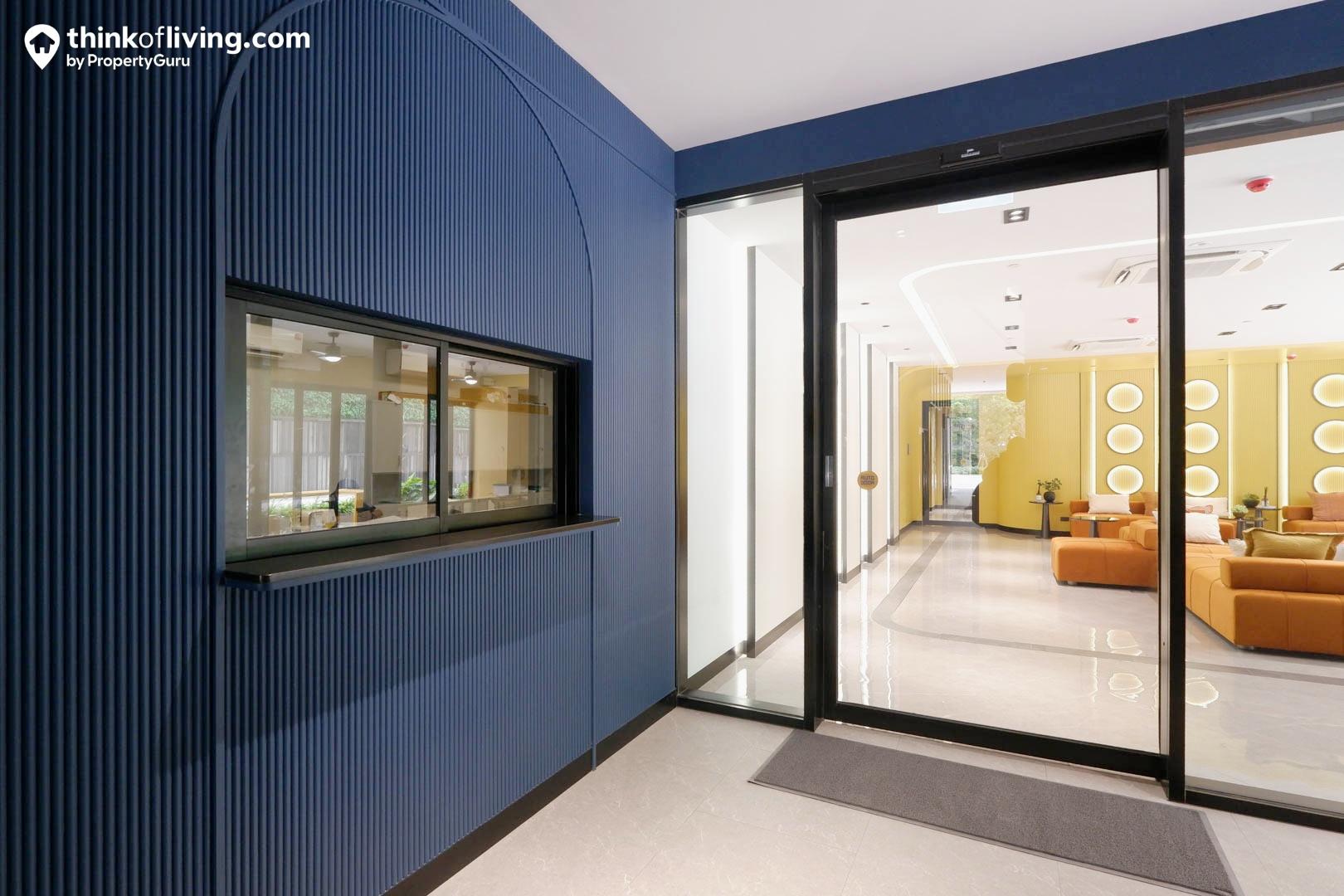 หากใครอยากได้เป็นครัวแบบปิดก็สามารถกั้นประตูกระจกเพิ่มได้นะ แลกมากับขนาดที่ไม่ใหญ่มากนักและเสียความโปร่งโล่งในห้องไปบ้าง แต่ก็จะได้ความเป็นสัดส่วนมากขึ้น รวมถึงเครื่องดูดควันที่ทางโครงการติดตั้งมาให้เป็นระบบหมุนเวียนที่ดูดควันไปปล่อยนอกอาคารอยู่แล้ว จึงช่วยระบายอากาศภายในห้องครัวได้ประมาณนึงเลยค่ะ