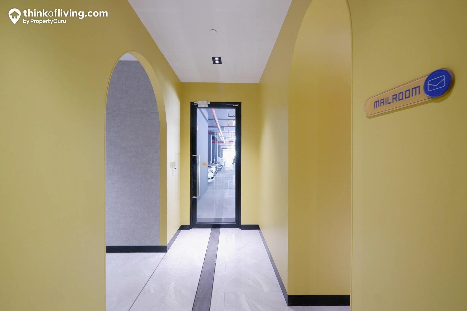 ส่วนวัสดุปูพื้นจะเป็นพื้น SPC ลายไม้ ทนรอยขีดข่วนและความชื้นได้ดี ส่วนปลั๊ก-สวิตช์ไฟฟ้า จาก SCHNEIDER, เครื่องปรับอากาศแบบ Wall Type จำนวน 1 ตัวตรงบริเวณ Common Area, ผนังและเพดานจะเป็นแบบฉาบเรียบทาสีขาวและไฟแบบดาวน์ไลท์ มีความสูงจากพื้นถึงฝ้าเพดานอยู่ที่ 2.80 เมตรสูงกว่าคอนโดทั่วไป (ความสูง 2.40-2.60 เมตร) เพราะด้วยโครงสร้างเป็น Floor to Floor จึงไม่มีฝ้าเพดานห้องเหมือนคอนโดอื่นๆ จึงทำให้การติดตั้งงานระบบต่างๆด้านบนจะเป็นแบบการเดินลอยซะส่วนใหญ่ ไม่สามารถใช้พวกไฟฝังในฝ้าแบบทั่วไปได้ค่ะ