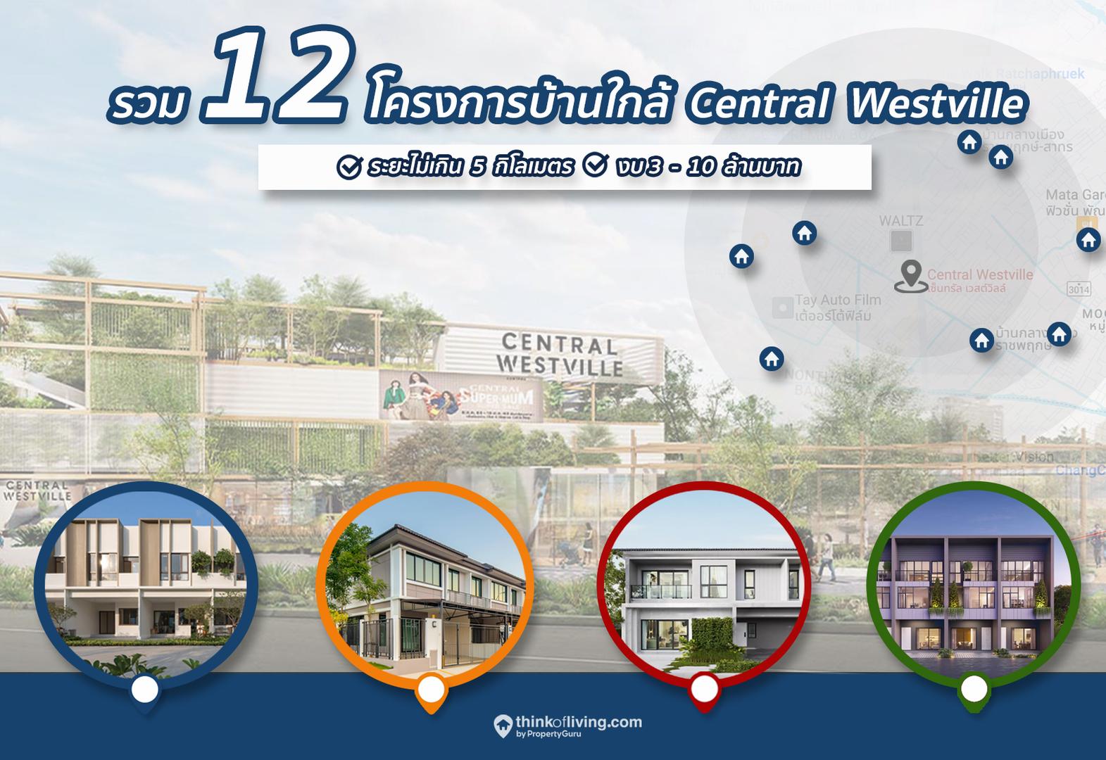 โครงการบ้านใกล้ Central Westville ในระยะ 5 กิโลเมตร ก็ถือว่ายังมีให้เลือกหลากหลาย โดยเฉพาะทาวน์โฮมที่มีตัวเลือกค่อนข้างเยอะ ราคามีตั้งแต่ 3 – 10 ล้านบาท ขึ้นอยู่กับขนาดพื้นที่ใช้สอยและทำเลโครงการ ซึ่งส่วนใหญ่จะอยู่ในกรอบเส้นถนนราชพฤกษ์ , นครอินทร์ , กาญจนาภิเษก และถนนบรมราชนนี เชื่อมต่อโซนนนทบุรีและกรุงเทพ ส่วนบ้านแฝดจะมีให้เลือกตั้งแต่ 5 – 6 ล้านบาทขึ้นไป และบ้านเดี่ยวส่วนใหญ่จะเริ่มที่ 8 ล้านบาท เมื่อเทียบกับทำเลอื่นๆบนเส้นราชพฤกษ์ ก็ถือว่ามีความใกล้เคียงกัน