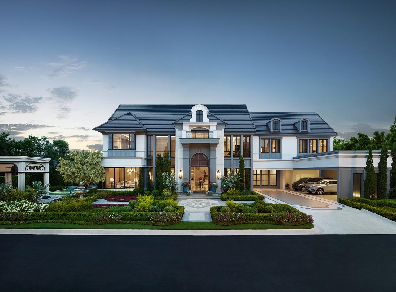 การออกแบบตัวบ้าน มาในสไตล์ Modern French Renaissance ด้วยเช่นกัน ได้แรงบันดาลใจจากเอกลักษณ์ของอาคารบ้านเรือนในปารีสยุครุ่งเรือง ดูหรูหรา แต่ลดทอนรายละเอียดต่างๆ ให้ดูโมเดิร์นมากยิ่งขึ้น เริ่ม 35 – 90 ล้าน* 45-90 ล้านบาท (update 14/10/2025)