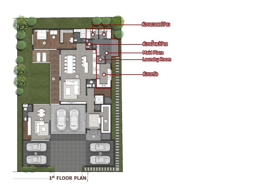 มองหาบ้านที่รองรับการต่อเติมในอนาคต รองรับที่จอดรถได้ถึง 10 คัน, มีพื้นที่สำหรับทำสระว่ายน้ำเพิ่มเติมได้ มีเทคโนโลยีต่างๆ ที่มาช่วยเรื่องความปลอดภัยและสุขภาพ เลือกใช้วัสดุในบ้านเป็นของแบรนด์ดัง มียี่ห้อระดับโลก