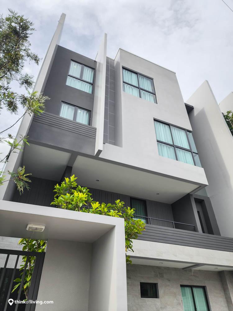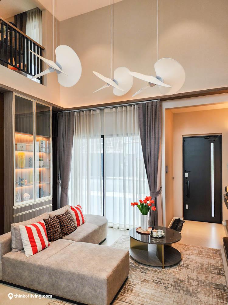 ทั้งโครงการมีบ้านแบบเดียว ที่ดินเริ่มต้น 35 ตร.วา พื้นที่ใช้สอย 340 ตร.ม. จัดมาเป็น 3 ห้องนอน 1 อเนกประสงค์ 4 ห้องน้ำ 3 ที่จอดรถ ข้อดีของบ้านหน้ากว้างทำให้จอดรถได้ถึง 3 คัน และทำให้ได้ช่องแสงภายในบ้านเยอะ บ้านจะดูสว่าง ถึงจะเป็นทาวน์โฮมแต่ก็มี Double Volume มาให้ด้วยนะที่ชั้น 1 พื้นที่ตรงนี้ทำให้เพิ่มความโปร่งโล่ง และทำให้บ้านดูหรูหราอีกด้วย ตรงนี้เหมาะกับทำเป็น Living และ Dining ชั้นล่างยังมีห้องเอนกประสงค์มาให้ด้วย ถ้าเป็นแอดมินห้องนี้จะจัดเป็นห้องทำงานไม่ก็ห้องดูหนังแน่ๆ ชั้นลอยของบ้านมีพื้นที่ทำเป็น Family Area ได้สบายๆ