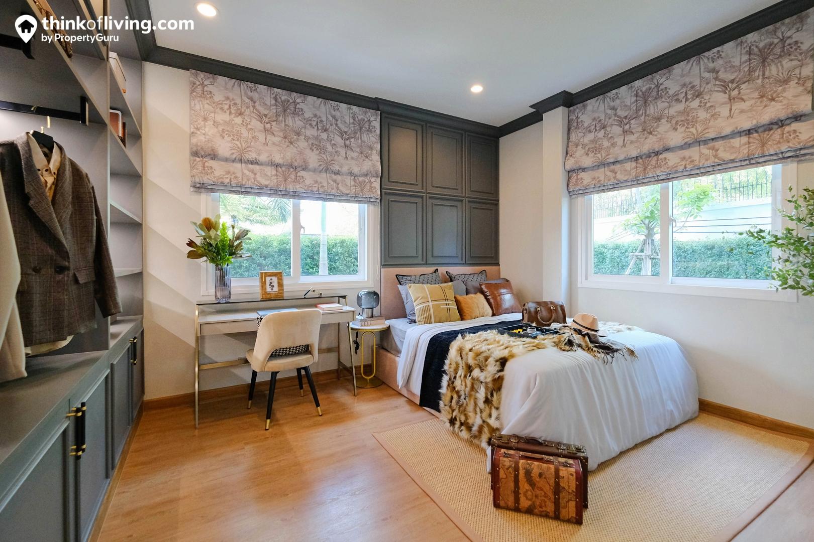 ห้องนอนรองในแบบบ้านนี้ได้มาขนาดมาใกล้เคียงกัน สำหรับในบ้านที่มีลูก 2 คนก็สามารถแบ่งกันใช้งานได้คนละห้อง ภายในมี Walk – in Closet และห้องน้ำแยกใช้งาน ได้ทั้งความสะดวกและเป็นส่วนตัว