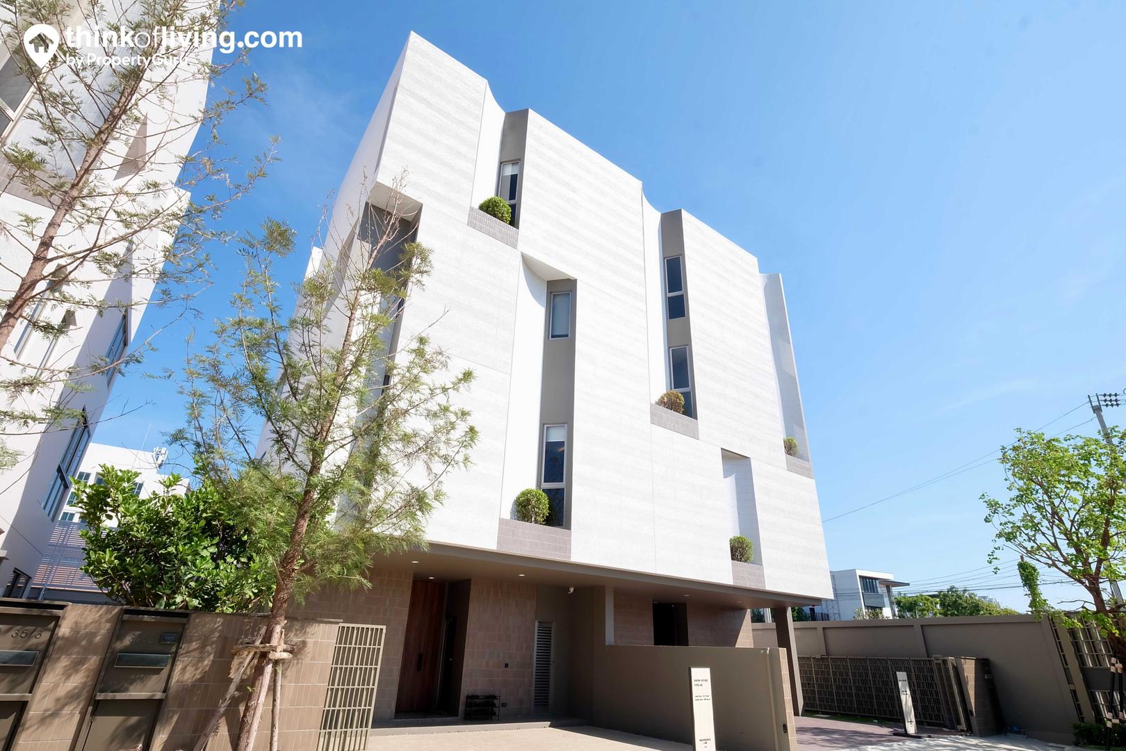 การออกแบบบ้าน : บ้านออกแบบมาในสไตล์ Modern Tropical ดูเรียบง่าย เป็นบ้านแฝด 3.5 ชั้น ได้ฟังก์ชัน 4 ห้องนอน 5 ห้องน้ำ 3 ที่จอดรถ ผนังแบบ Double Wall พร้อมฉนวนกันเสียง ทุกห้องนอนมีทั้งห้องน้ำส่วนตัว รองรับการติดตั้งลิฟต์ไฮดรอลิก เน้นพื้นที่ภายในตัวบ้าน จึงไม่มีระเบียงตามห้องต่าง ๆ ของบ้าน ทำให้ใช้พื้นที่ภายในได้เต็มที่ โครงการเพื่อนบ้านในราคาใกล้เคียงกันอาจจะดูพื้นที่ใช้สอยเยอะ เพราะมีพื้นที่ดาดฟ้ามาให้ ซึ่งบางคนอาจจะไม่ได้ขึ้นไปใช้งานบ่อย