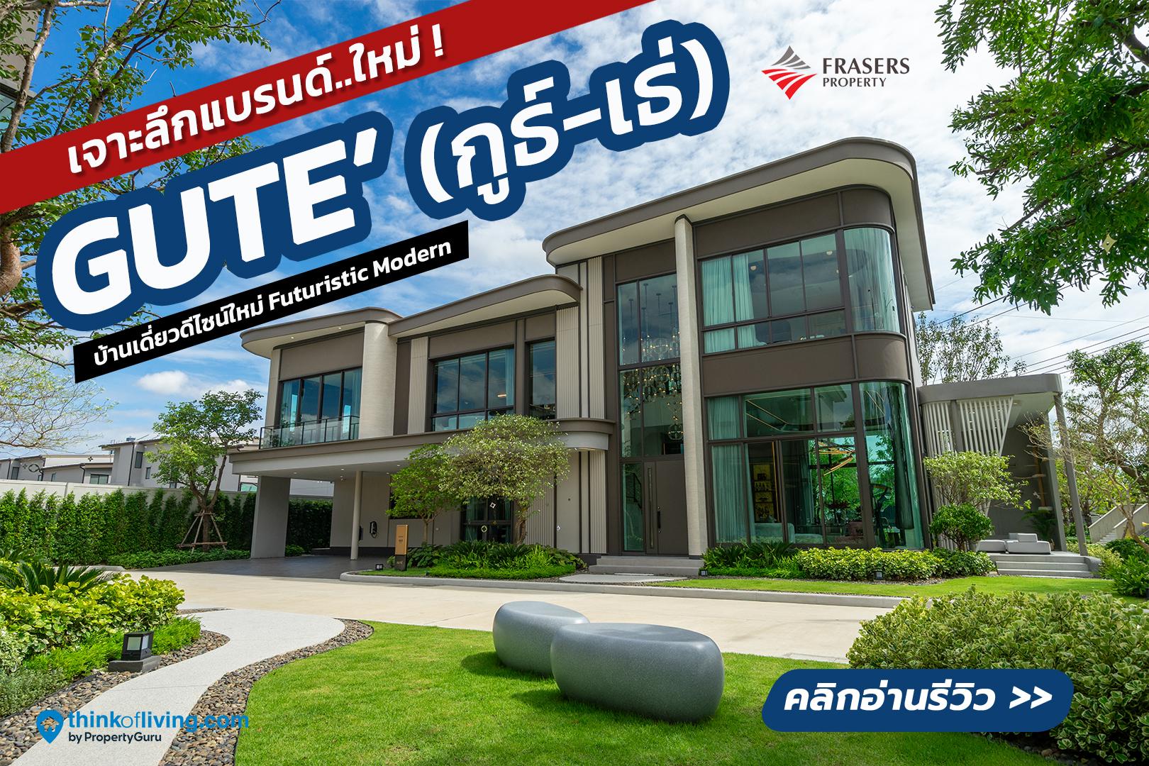Gute’ เป็นอีกหนึ่งโครงการแนวราบแบรนด์ใหม่จาก Frasers Property ที่เปิดตัวในปีนี้พร้อมๆกับทาวน์โฮม โกลดีน่า (Goldina) แน่นอนว่าทั้ง 2 แบรนด์เค้ามีความตั้งใจที่อยากพลิกโฉมการออกแบบบ้านใหม่ทั้งหมด ไม่ว่าจะเป็นสไตล์ ฟังก์ชัน และราคา ที่ต้องการยกระดับแบรนด์บ้านเดี่ยวและทาวน์โฮมของ Frasers ให้มีความ Luxury มากขึ้น พร้อมจับกลุ่ม Target ตลาดระดับบน และตลาดคนรุ่นใหม่ที่ชอบความทันสมัยมากขึ้นด้วยครับ