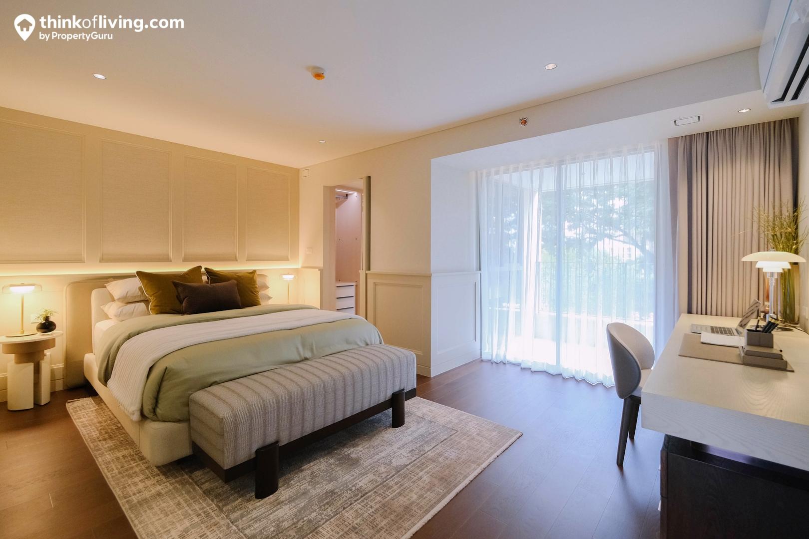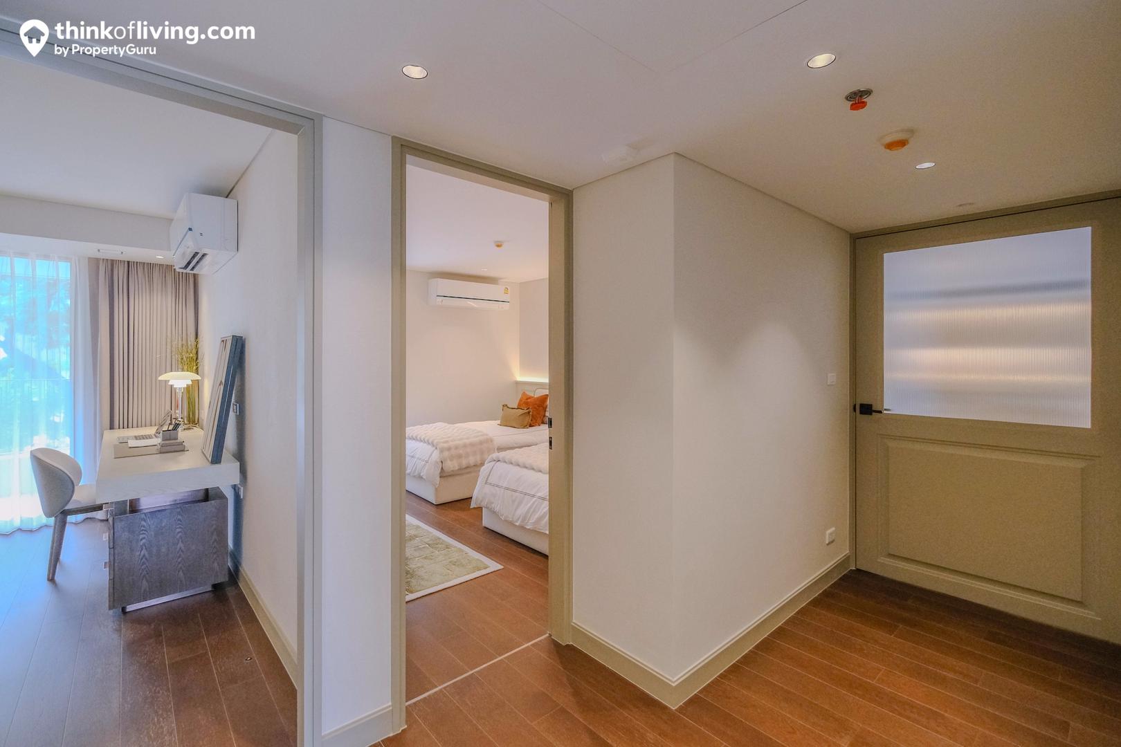 ส่วนห้องนอนจะแยกไปอยู่อีกฝั่ง ทั้งยังมีประตูกั้นแยกอีกชั้น ช่วยเพิ่มความเป็นส่วนตัวและความปลอดภัยให้กับผู้อาศัย ด้านในแบ่งเป็น Master Bedroom ขนาดใหญ่ และห้องนอนรองอีก 2 ห้องที่ได้ห้องน้ำและ Walk – in Closet แยกใช้งานในตัว เหมาะกับครอบครัวที่มีสมาชิก 4 – 5 คนได้เลย โดยจุดเด่นอีกอย่างของห้องพักอาศัยในโครงการนี้ก็คือ ระเบียงที่ได้มาขนาดใหญ่ สามารถออกไปใช้งานได้จริง จะใช้เป็นมุมพักผ่อน , ออกไปนั่งเล่น , ชมวิว หรือจัดสวนเล็กๆ ก็ช่วยเสริมบรรยากาศร่มรื่น ผ่อนคลายได้ดีเลยนะคะ
