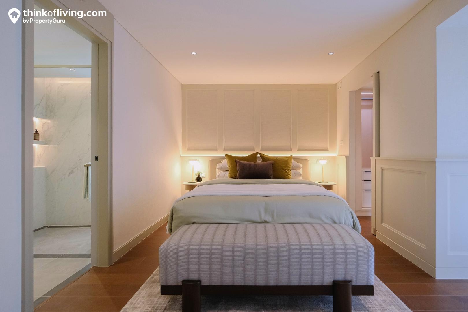 ติดกันเป็นห้องนอนอีกห้อง ได้ Layout แตกต่างกันชัดเจน โดยห้องนี้สามารถวางเป็นเตียงขนาด 5 ฟุตพร้อมโต๊ะหรือตู้ข้างเตียงทั้งสองฝั่งได้แบบสบายๆ ด้านข้างแยก Walk – in Closet และห้องนอนอยู่คนละฝั่ง ปลายเตียงยังเหลือที่ค่อนข้างกว้าง ให้วางเป็นมุมนั่งทำงานในห้องได้เลย โดยจุดเด่นของห้องนี้ก็จะระเบียงส่วนตัวให้ออกไปใช้งานได้