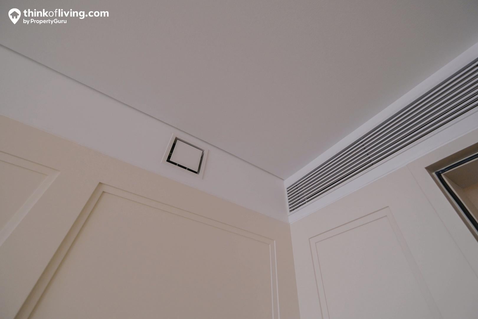 ฝ้าเพดานความสูง 2.40 เมตร มีการติดตั้งระบบ Air Quality ที่ช่วยให้อากาศในห้องหมุนเวียน ถ่ายเทได้ดี โดยจะทำหน้าที่เติมอากาศบริสุทธิ์เข้ามาผ่าน Filter ที่สามารถกรอง PM 2.5 ได้ด้วย ซึ่งในห้องพักอาศัยของโครงการนี้ ก็ติดตั้งมาให้หลายจุดเลย ทั้งในส่วน Common Area และในห้องนอนทุกห้อง จึงทำให้ได้อากาศที่สะอาดและสดชื่นตลอดเวลา
