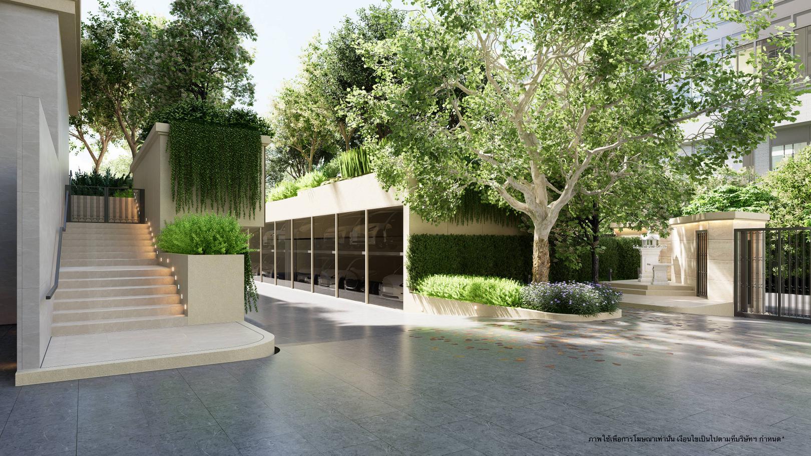 ภาพจำลองบรรยากาศทางเข้าของโครงการ บริเวณด้านหน้าติดกับซอยพร้อมจิตร และถนนภายในโครงการ