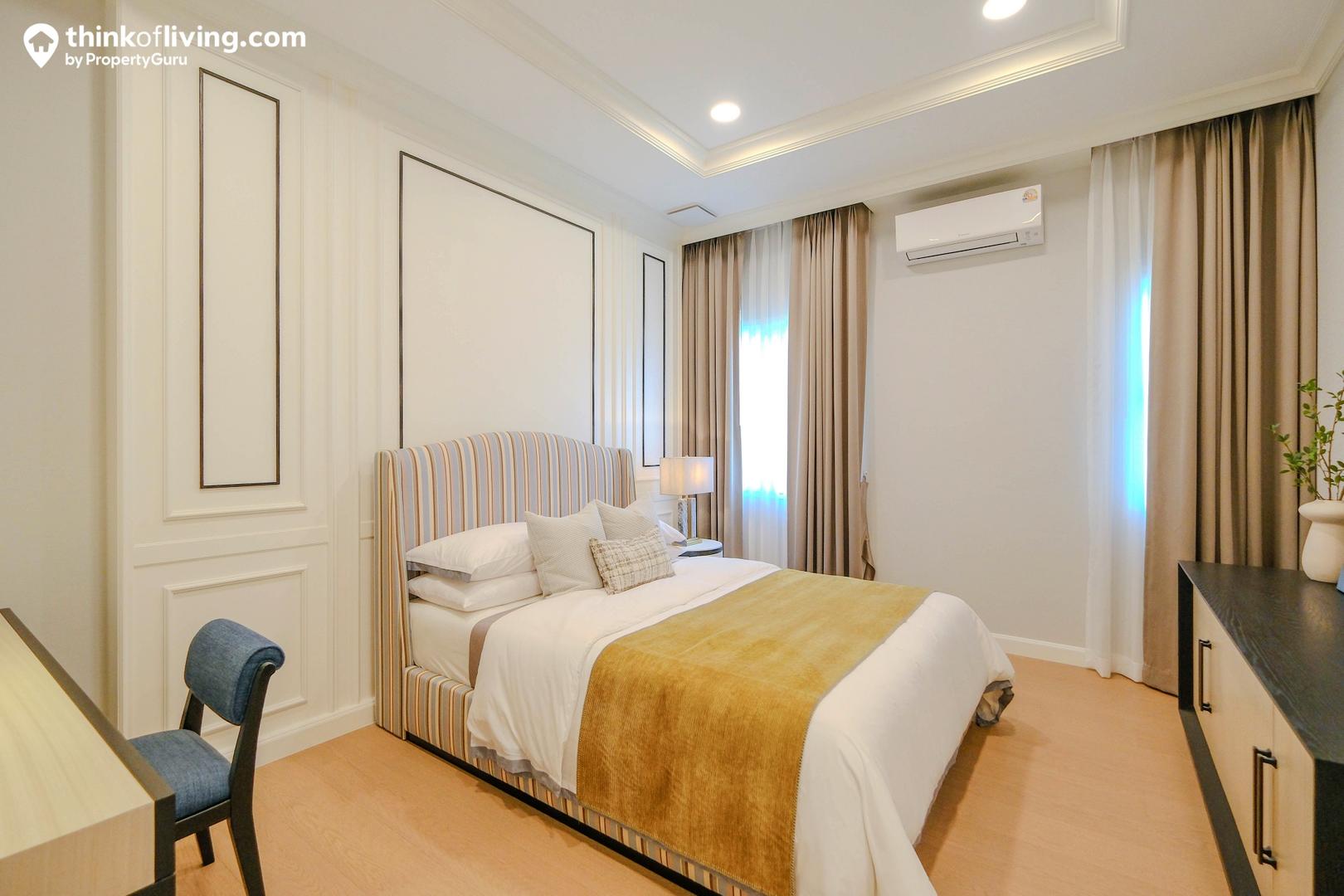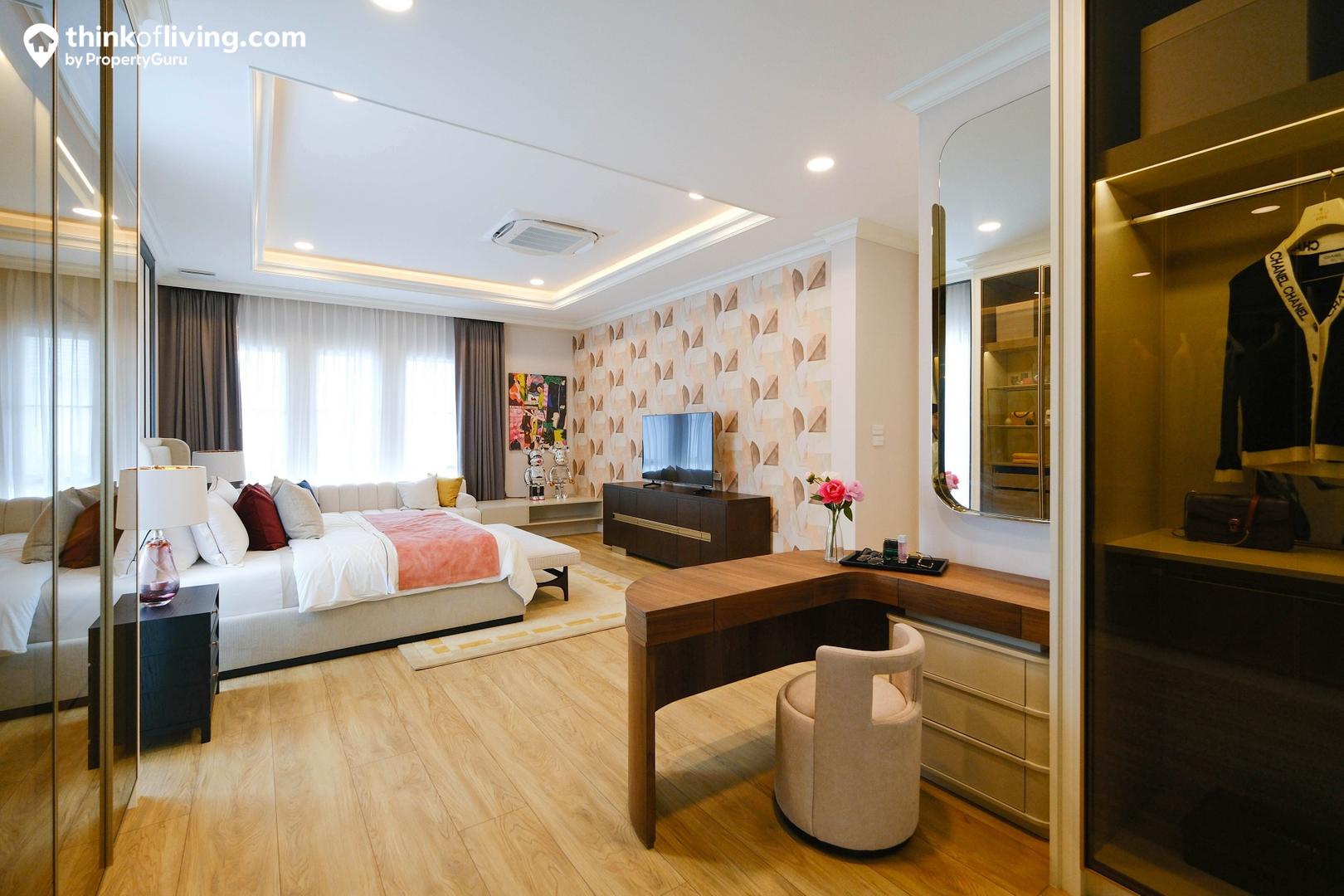 รูปแบบบ้านของโครงการนอกจากจะมี Master Bedroom แล้ว ยังมี Grand Master Bedroom ที่ดูกว้างขวาง โอ่อ่า สมกับเป็นห้องเจ้าของบ้าน แปลนได้เป็นหน้ากว้าง มีพื้นที่วางเตียงนอนขนาดใหญ่ ที่สามารถวางโต๊ะทำงาน โซฟานั่งเล่นในโซนพักผ่อนได้เลย ส่วน Walk – in Closet ได้มาขนาดใหญ่เช่นกัน ทั้งยังมีการกั้นแยกเป็นสัดส่วน มาพร้อมตู้เสื้อผ้า Built – in ครบ ไม่ต้องทำเองเพิ่ม