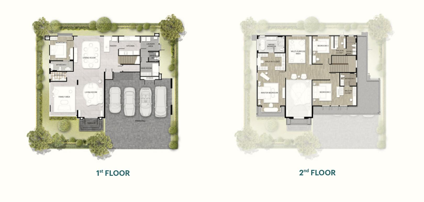 – ฟังก์ชัน 4 ห้องนอน / 5 ห้องน้ำ / 4 ที่จอดรถ / 2 ห้องแม่บ้าน