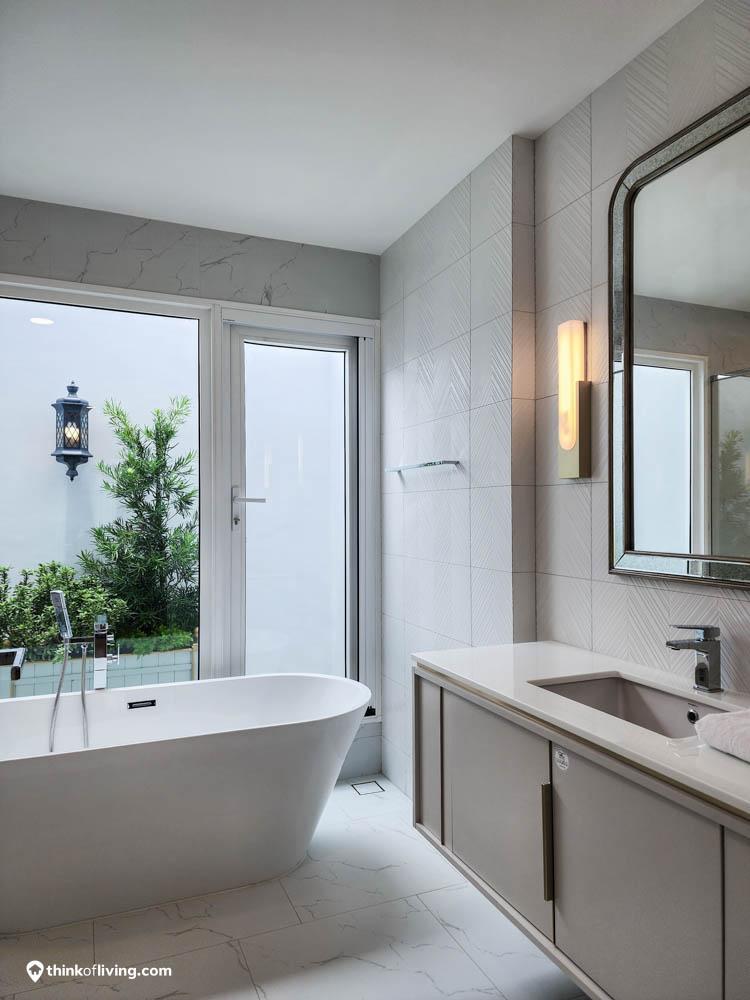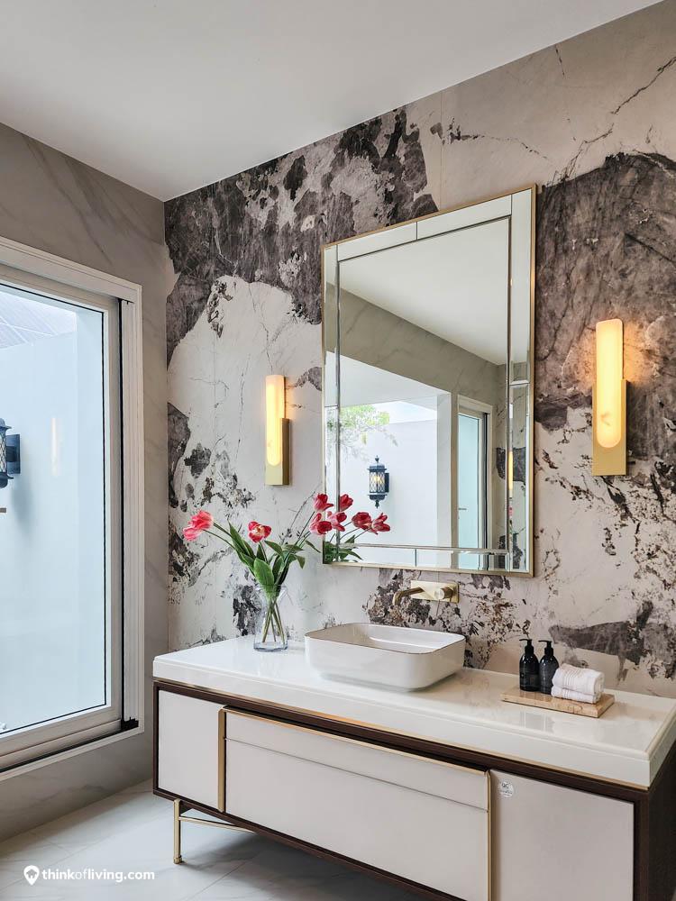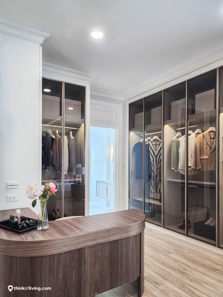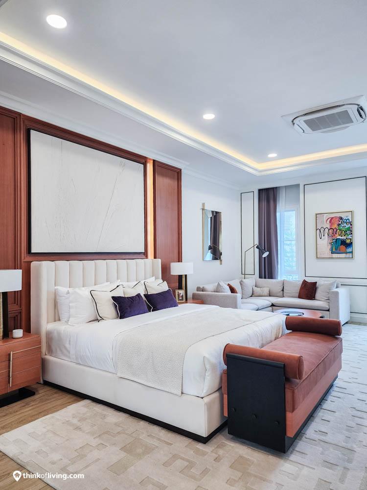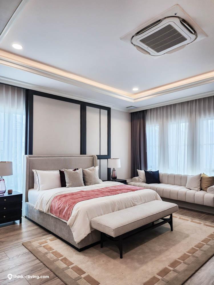 เป็นบ้านที่มีห้อง Master Bedroom ที่ว่าใหญ่แล้ว ยังมีห้องที่ใหญ่กว่าคือ Grand Master Bedroom ใหญ่แบบวางเตียง 10 ฟุตได้เลยนะ มีทั้งมุมนั่งเล่น มุมทำงาน Walk in closet ที่ทำตู้หน้าบานได้แบบ รอบทิศทาง และทีเด็ดคือห้องน้ำ ให้มาขนาดใหญ่และมีมุมที่เป็นอ่างอาบน้ำ ตรงนี้ทำมาได้สวยมากๆ ชมสวนที่ภายนอกได้ บรรยากาศดีมากๆ