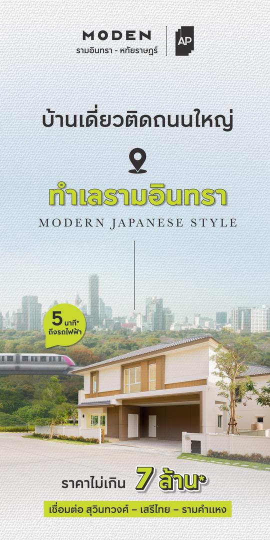 สนใจโครงการ MODEN รามอินทรา – หทัยราษฎร์ เริ่ม 6.49 – 12 ล้าน* คลิก : https://apthai.ly/6fcAoW