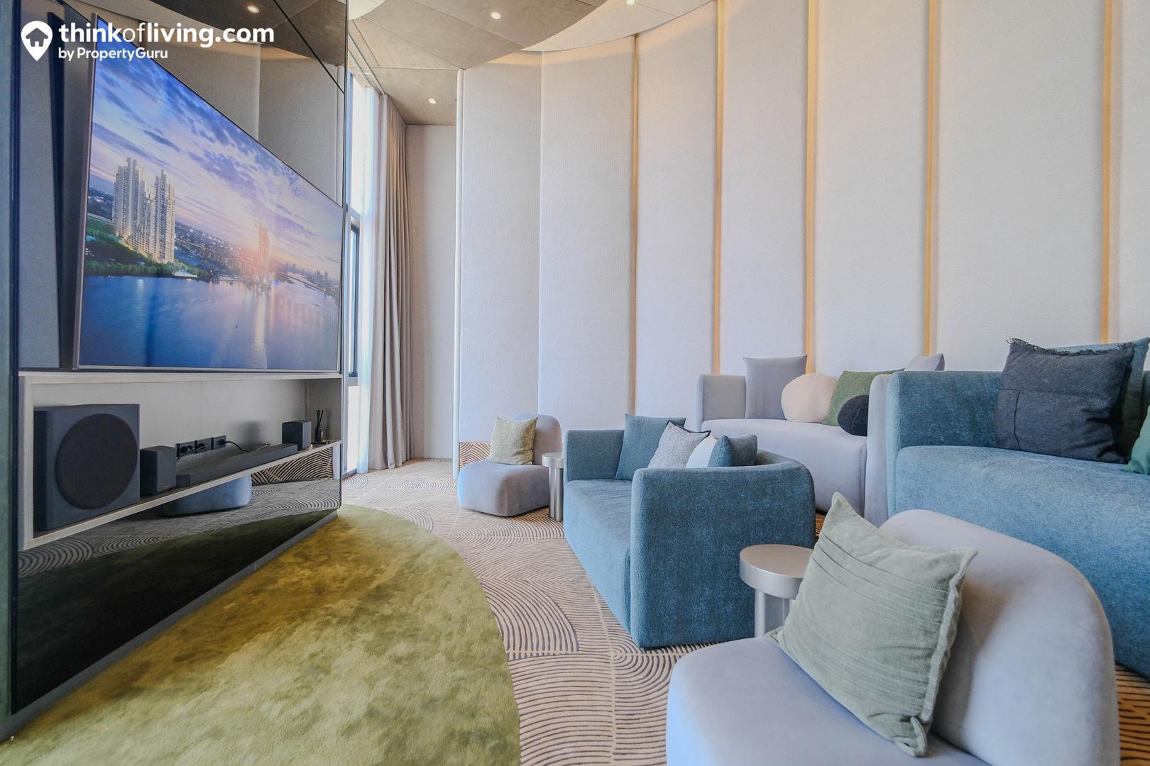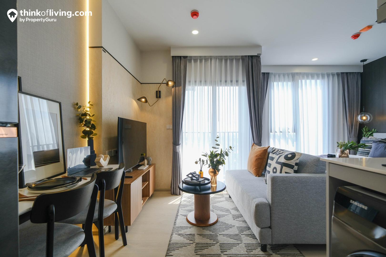 พื้นที่ใช้งานส่วนนั่งเล่นในห้องตัวอย่าง 1 Bedroom