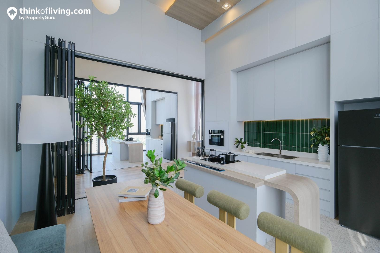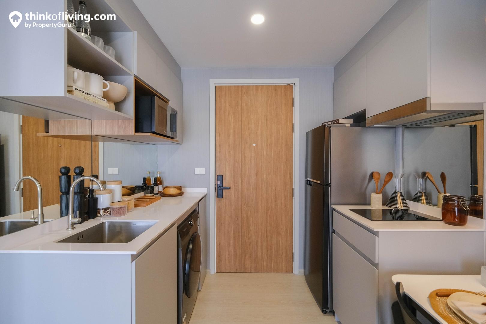 พื้นที่ใช้งานส่วน Pantry และพื้นที่รับประทานอาหารภายในห้องตัวอย่าง 1 Bedroom