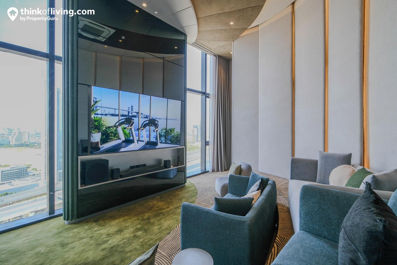 โดยพื้นที่ส่วนกลางจะมีกระจายให้ใช้งานได้ทุกอาคาร ฟังก์ชันหลักคือ Lobby , Mail Room , Co – Working Space เรียกว่าเป็น Valley Zone ของโครงการ ตรงกลางเป็นพื้นที่สวนขนาดใหญ่มาพร้อม Pet Park รวมเนื้อที่ได้กว่า 3 ไร่ ช่วยเพิ่มบรรยากาศร่มรื่นในโครงการได้ดี ส่วน Sky Zone จะอยู่ที่ชั้น 35 ของอาคาร B และ C ได้วิวแม่น้ำและเมืองมุมสูงแบบเต็มๆ สุดท้ายคือ River Zone เป็นพื้นที่ส่วนกลางแบบ Outdoor ที่อยู่ติดริมแม่น้ำ ลูกบ้านจากอาคารอื่นๆ เดินมาใช้งานได้ง่าย จะใช้ทางเดิน Jogging Track ผ่านสวน หรือทางเชื่อมบนชั้น 2 ที่เดินได้ตั้งแต่อาคารจอดรถมาจนถึงอาคาร H ได้เลย รวมระยะทางประมาณ 200 เมตร นอกจากนี้ในโครงการยังมีรถกอล์ฟคอยวิ่งให้บริการ สำหรับใครที่ไม่อยากเดินให้เหนื่อย