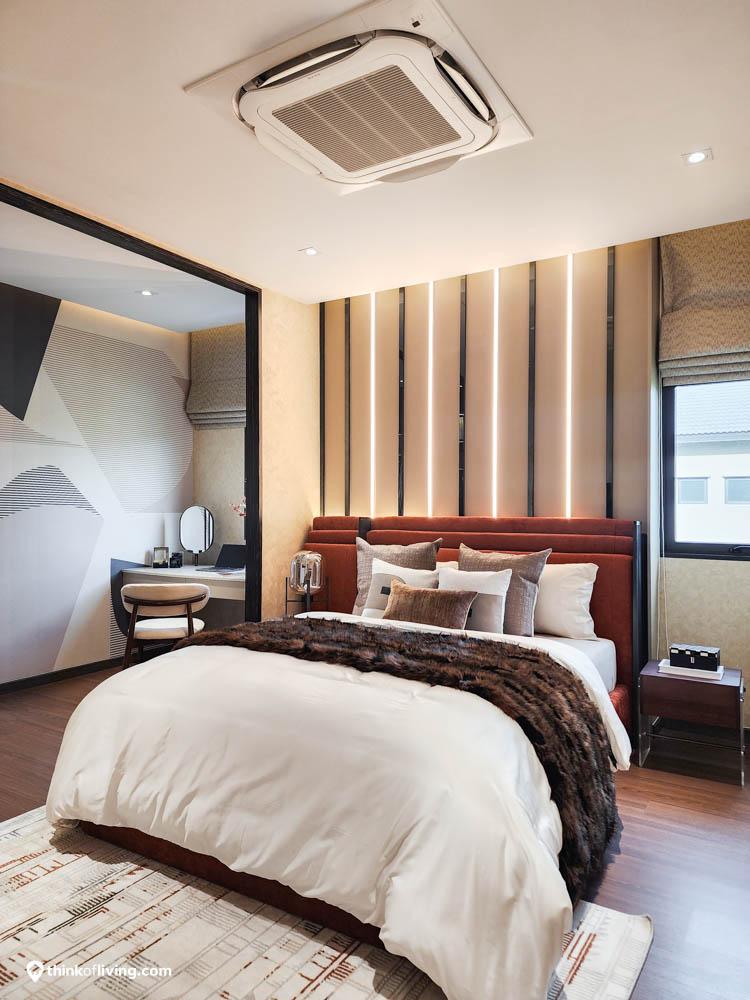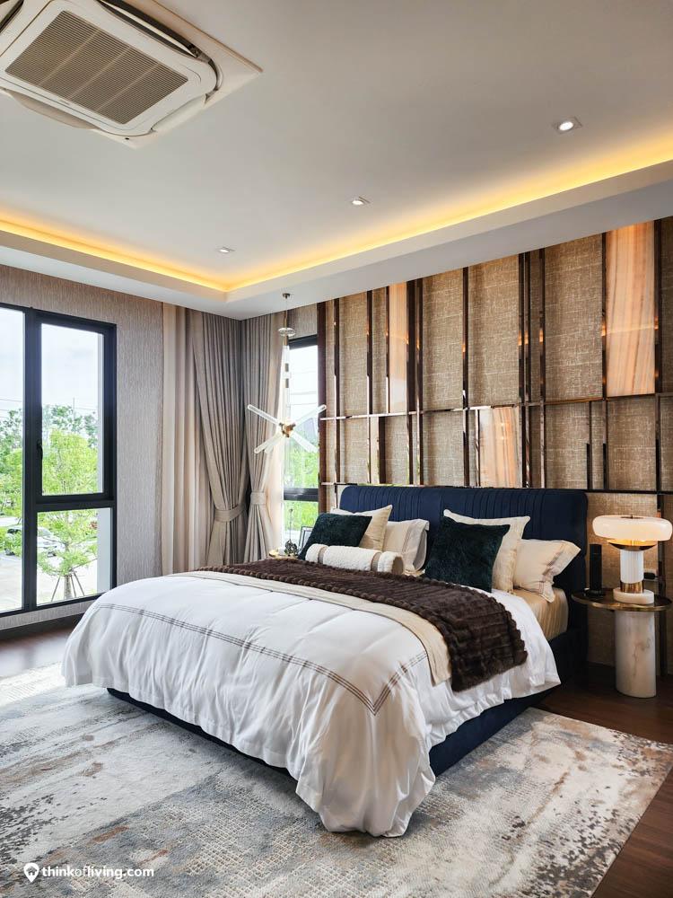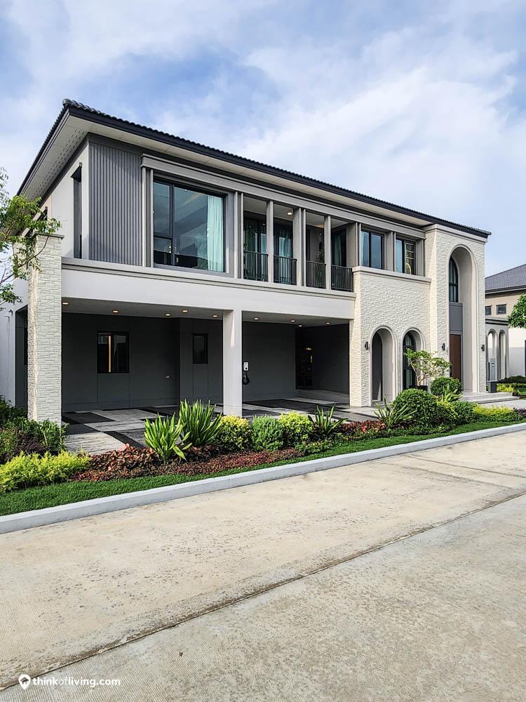 อย่างบ้านหลังนี้ที่พามาชมเป็นแบบ ORIANA พื้นที่ใช้สอย 454 ตร.ม. จัดมาเป็น 5 ห้องนอน, 6 ห้องน้ำ, 1 ห้องแม่บ้าน, 4 ที่จอดรถ